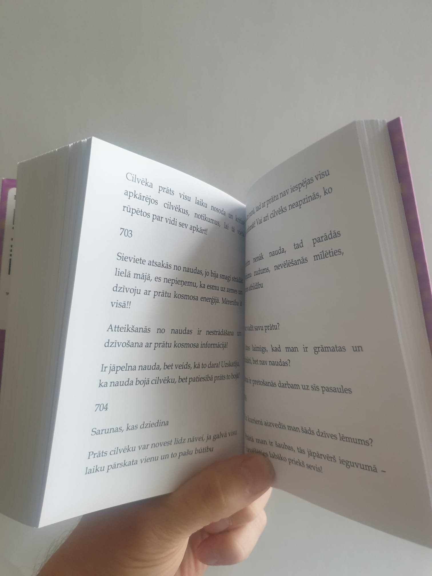 - Grāmatai nav bijusi korekcija un tur saglabājies mans oriģinālais vārdu lietojums, teikumu uzbūve. Kādēļ? Lai mainītu prāta uztveri, kas ir pareizi un kas nav! Man ilgi pārmeta cilvēki, ka nemāku skaidri izteikties vai noformulēt domu. Es tikai tagad sajūtu savu oriģinalitāti, jo man ir dota iespēja dzīvot uz šīs zemes